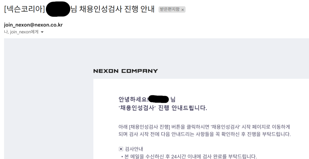 메이플스토리 PC 게임 프로그래머 채용 면접 관련 진행 일정과 준비할 것들에 대해 친절하게 설명해 주셨고, 같은 내용을 이메일로도 다시 정리해서 보내주셨다.