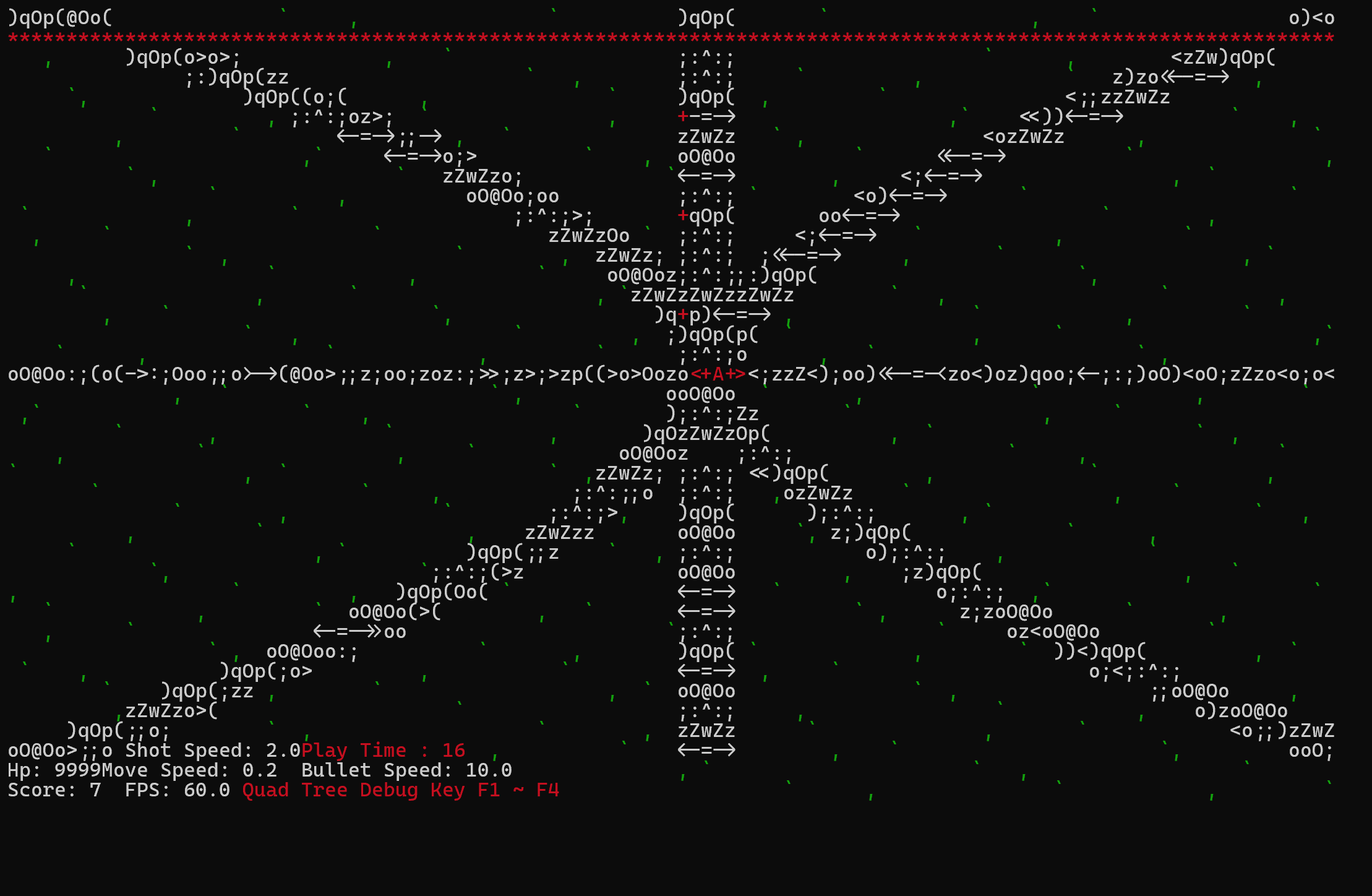 | 디버그 모드 | 화면에 Quadtree 디버그 라인 표시 |