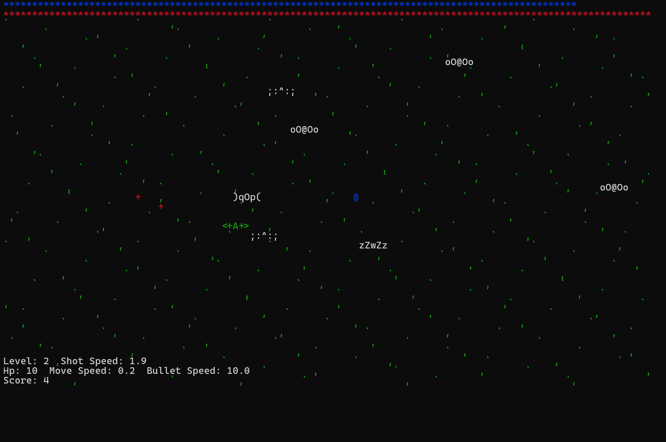 콘솔 환경에서 뱀서류(서바이버) 핵심 루프를 구현한 프로토타입입니다. 자체 엔진 구조를 기반으로 Player/Enemy/Bullet, EXP·레벨업·스탯, 카메라 스크롤 월드, 대량 객체 처리(Object Pooling), 충돌 최적화(AABB → Quadtree), 디버그 모드를 통합하여 구현-통합-디버깅-최적화의 전 과정을 경험하는 것을 목표로 했습니다. - 개발 기간: