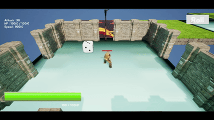 허브, 주사위, 포탈, 전투 필드를 연결해 플레이 가능한 기본 루프를 먼저 완성했습니다. 이동, 전투 진입, 클리어 후 복귀까지의 흐름을 우선 구현한 뒤 세부 기능을 보강했습니다.