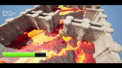 테마별로 공격(물 테마), 체력(마그마 테마 ), 속도(잔디 테마) 보상을 나누고, 방문 횟수에 따라 스탯 증가와 스킬 해금이 이루어지도록 계획하였으나 일정을 맞추지 못해 스탯 증가만 구현했습니다. 또한 HUD에 HP와 주요 스탯을 표시해 전투 결과와 보상 변화가 바로 보이도록 했습니다.